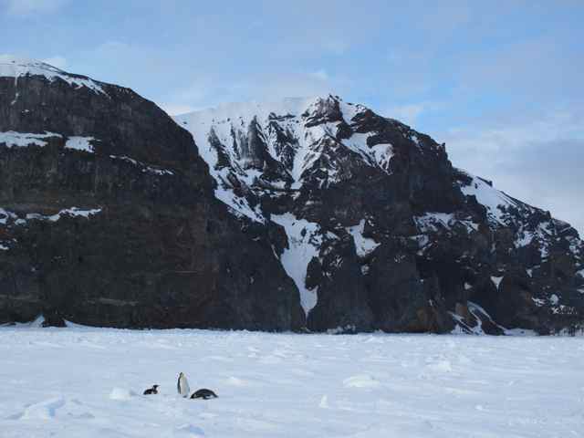 These Cenozoic volcanic are typical of the islands towards the southern end of the Ross Sea, and along its western coast. But give the choice between photographing cute fluffy Emperor penguin chicks (think ‘Happy Feet’!) and a sequence of volcanics, most folk chose the former – although the cliffs did their best to draw attention with a series of noisy rockfalls.