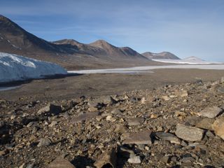 There were no penguins here, and no life apart from some endolithic lichens and bacteria. Just rocks. The valley floor is strewn with moraine containing a huge range of lithologies, sourced from the mountains. The main valley glacier is long gone and now the main agent of erosion is the powerful katabatic winds which race down off the icesheet at up to 320 km/hr.
