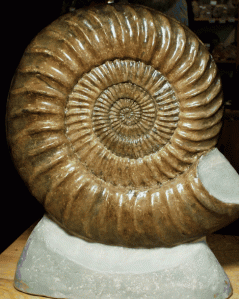 Then to the rescue came Professor John Cope of the National Museum of Wales, Cardiff, who (agreeing with the arietitid designation) contacted fellow ammonitologist Murray Edmunds (author of a recent Palaeontographical Society monograph on eoderoceratids and in his day-job Director of Medical Writing at Watermeadow Medical). Murray identified it as Coroniceras lyra, from the Lower Sinemurian. We are lucky enough to have received a picture of one of Murray’s own specimens of the species (with shell, rather than mouldic preservation).