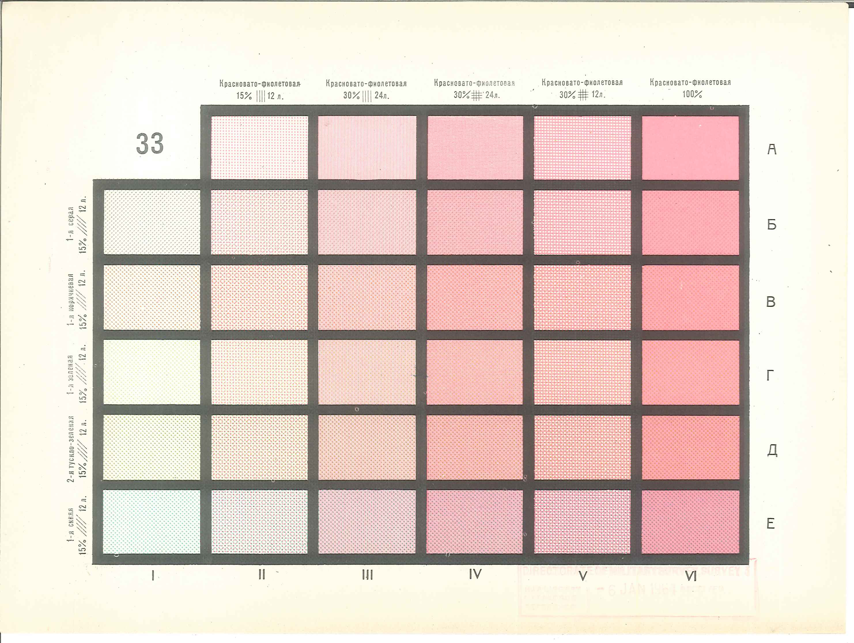 These cards were intended to give map-makers a range of standard colours and transparency levels they could choose from when making their maps. There is small pamphlet with the cards indicating which table should be used for which, for example tables 8-12 are for use with Cretaceous strata (МЕЛОВОЙ СИСТМЫ), tables 26-29 are for the Devonian (ДЕВОНСКОЙ СИСТЕМЫ) while tables 33-35 are for the Cambrian (КЕМБРИЙСКОЙ СИСТЕМЫ).