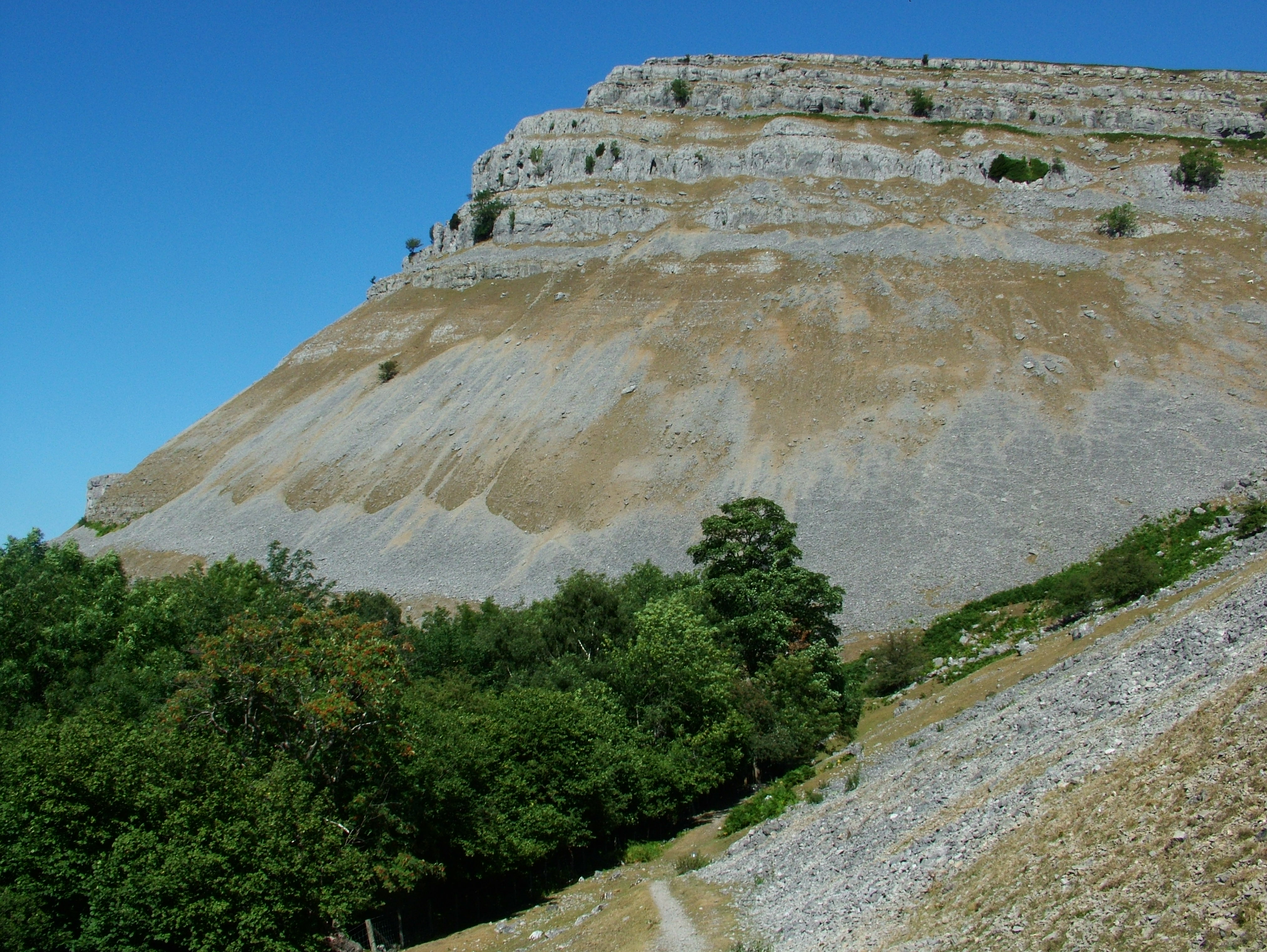 The main escarpment rises in a series of steps over 450m, and includes one of the finest exposures of late Dinantian limestones in Wales. Such a thick sequence shows the different styles of Dinantian cyclicity, whilst the 10km or so length of escarpment provides an opportunity to study the lateral variation in sedimentation.