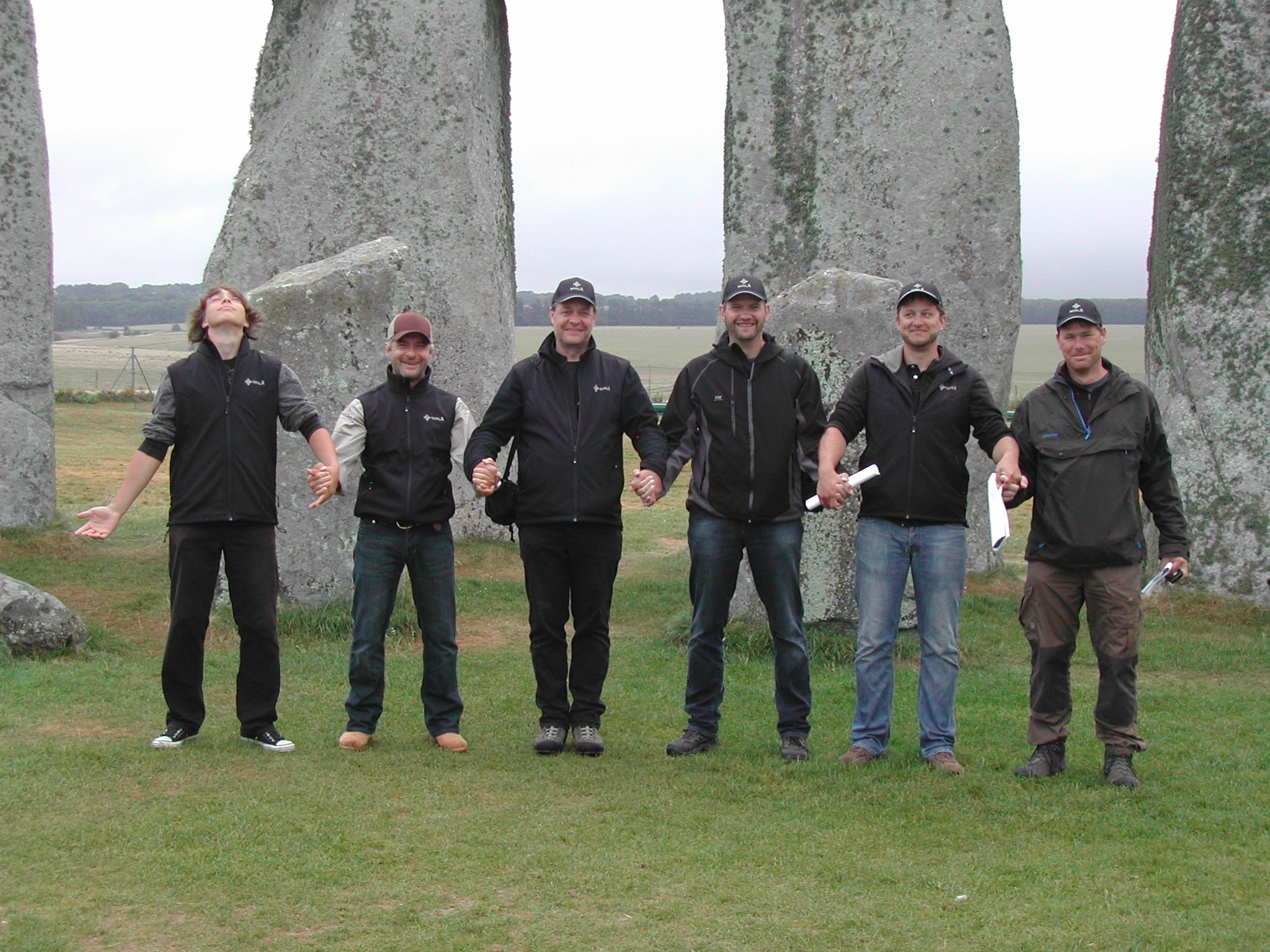 Part of the LBI ArchPro survey team at Stonehenge (from left: Nico Neubauer, Thomas Zitz, Wolfgang Neubauer, Klaus Löcker, Erich Nau, Immo Trinks).© LBI ArchPro, Geert Verhoeven