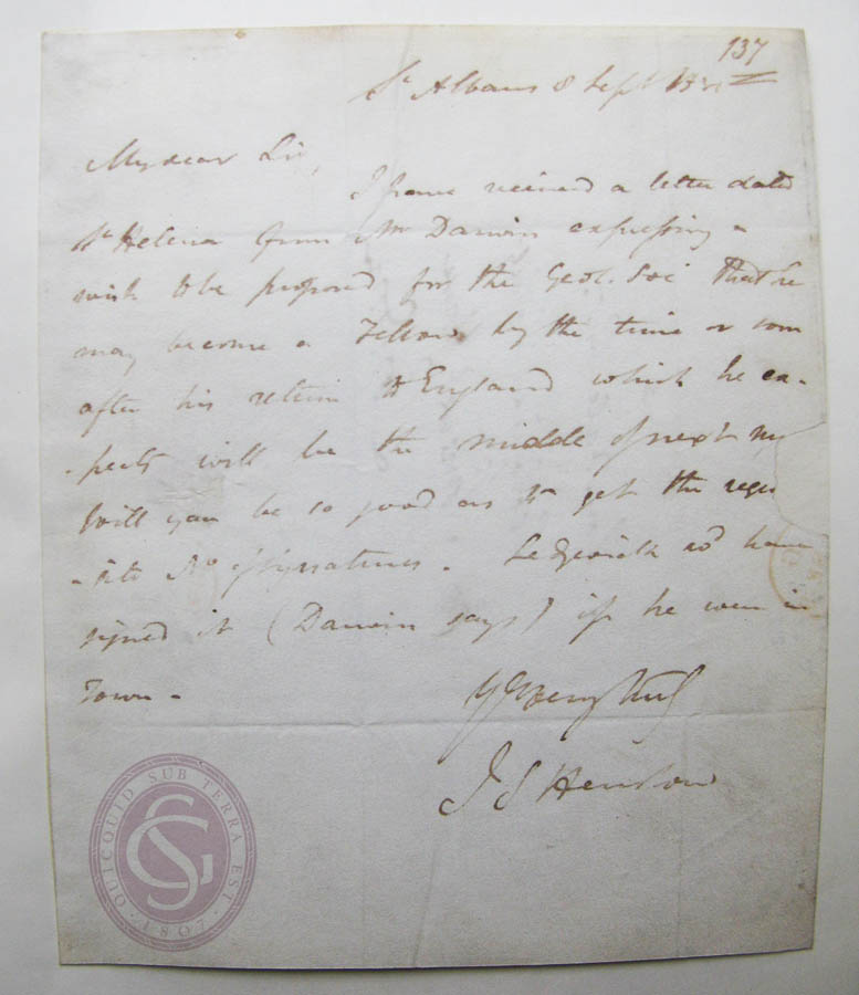 Henslow duly took the proper preparatory steps, and wrote to the Geological Society, proposing Darwin’s membership.