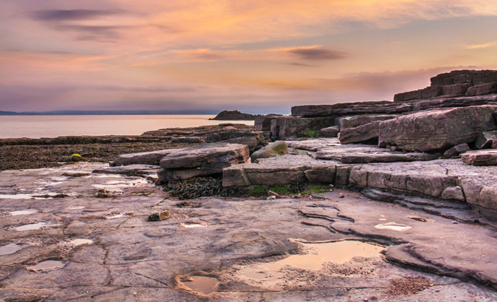 May: Dinosaur footprints at Bendrick Rock, c. Alan Beattie