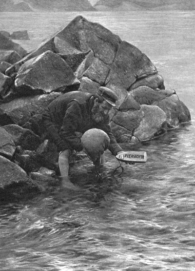Launching the St Kilda Mailboat ( ©Richard Kearton) Published December 17, 2015 at 400 × 555 in Door 19: The Evacuation of St Kilda ← Previous Next →