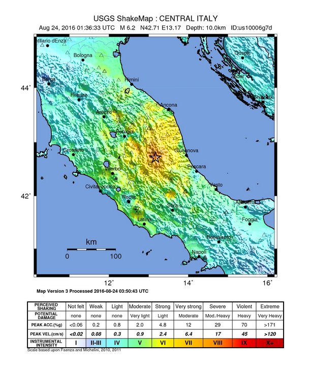 italy shake map Published August 24, 2016 at 612 × 719 in M6.2 Earthquake in Italy M 6.2 Italy earthquake shake map (USGS)