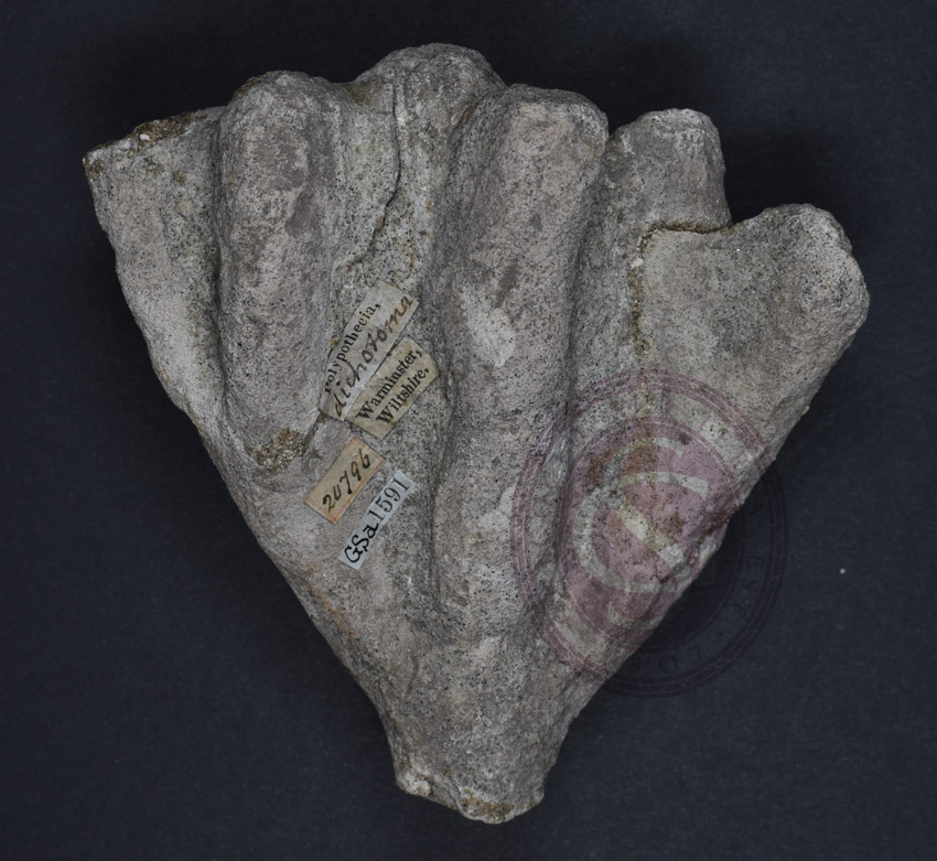 fig-5c-sponge Published November 24, 2016 at 850 × 781 in Door 5: The fossils of Etheldred Benett ← Previous Next → Polypothecia dichotoma, Warminster, Wiltshire. The location and genus labels are Benett’s