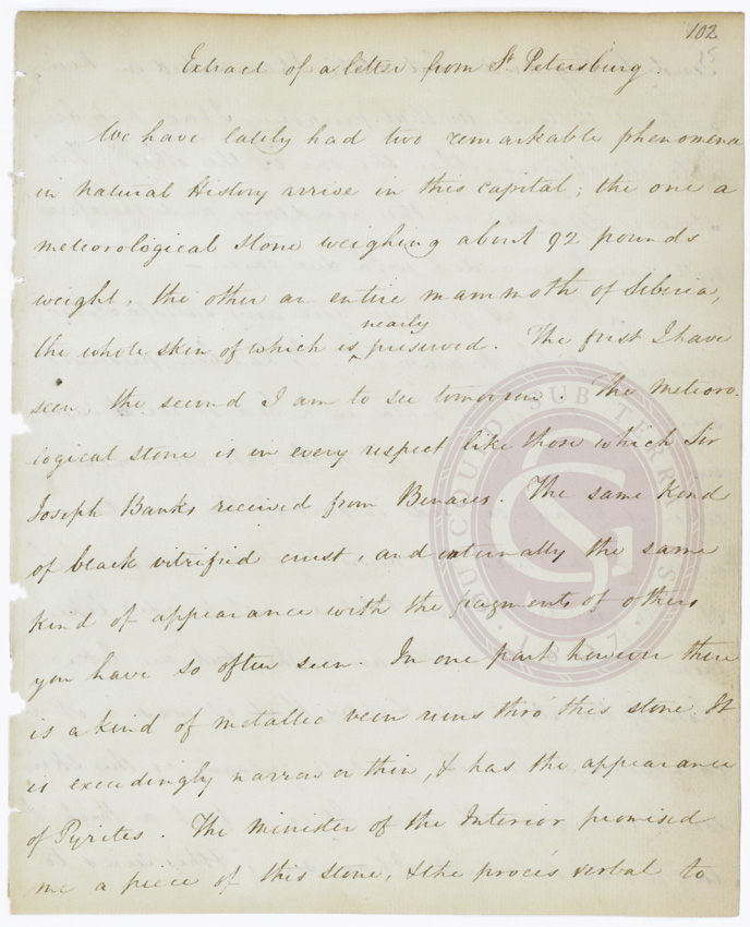 ldgsl-1-15-crichton-p1 Published November 24, 2016 at 688 × 850 in Door 7: Account of a meteorite and mammoth from Russia ← Previous Next →