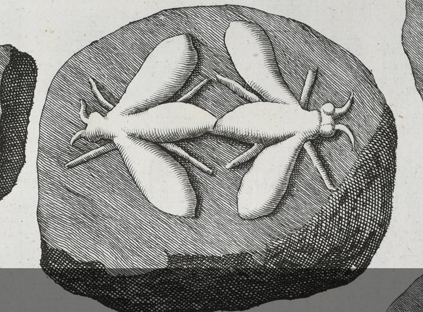 Insects Published March 31, 2017 at 850 × 627 in The Lying Stones of Johann Beringer ← Previous Next → One of the many stones capturing creatures in the act of copulation.