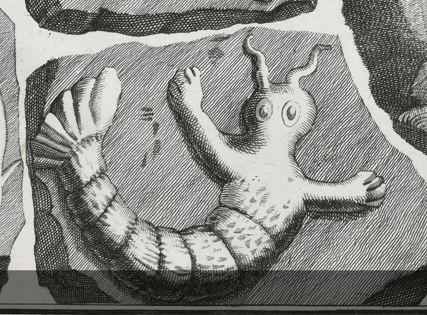 Mermaid engraving Published March 30, 2017 at 850 × 627 in The Lying Stones of Johann Beringer ← Previous Next → A similar creature from Beringer’s Lithographiae Wirceburgensis