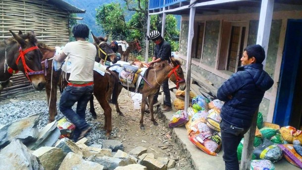 The school is five hours walk from the nearest road, so all building supplies are carried for the last part of their journey on mules and donkeys. That’s why building work takes so long in remote parts of the country – the logistics of organising the materials are a little different to the UK!