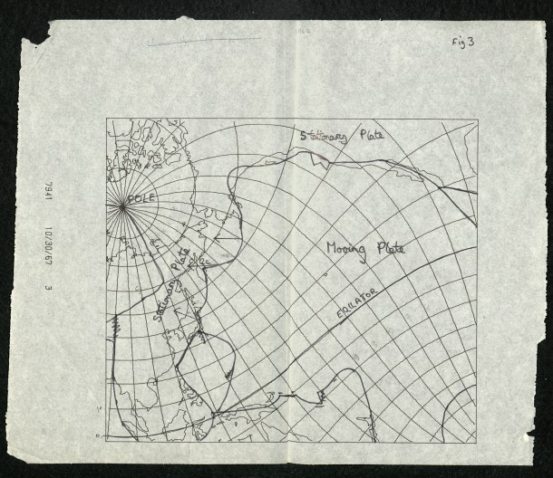 Original figure from McKenzie, D & R L Parker, “The North Pacific: an example of tectonics on a sphere”, ‘Nature’ vol 216 (1967), pp1276-1280.