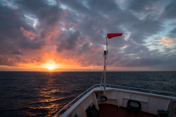 Sunsets never disappoint, especially when it’s the only thing you see for twp months at sea. Image c. Vivien Cumming
