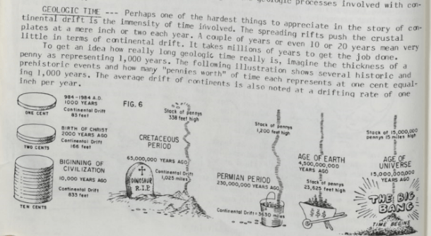 The guide contains a glossary, instructions for arranging the plates, and various helpful info – including an explanation of geological time using the analogy of pennies.