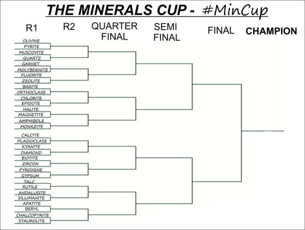 If you’re not on twitter, or were otherwise somehow unaware of it, you missed out on one of the seminal social media trends of 2017 (excluding our own #geobakeoff, obviously) – the #MinCup. During the month of September, 32 minerals battled it out to become the ultimate champion in a series of knock out rounds decided by public vote. It was very tense. Head over to Eddie Dempsey’s (aka @tectonictweets) website to read more about how it went down.