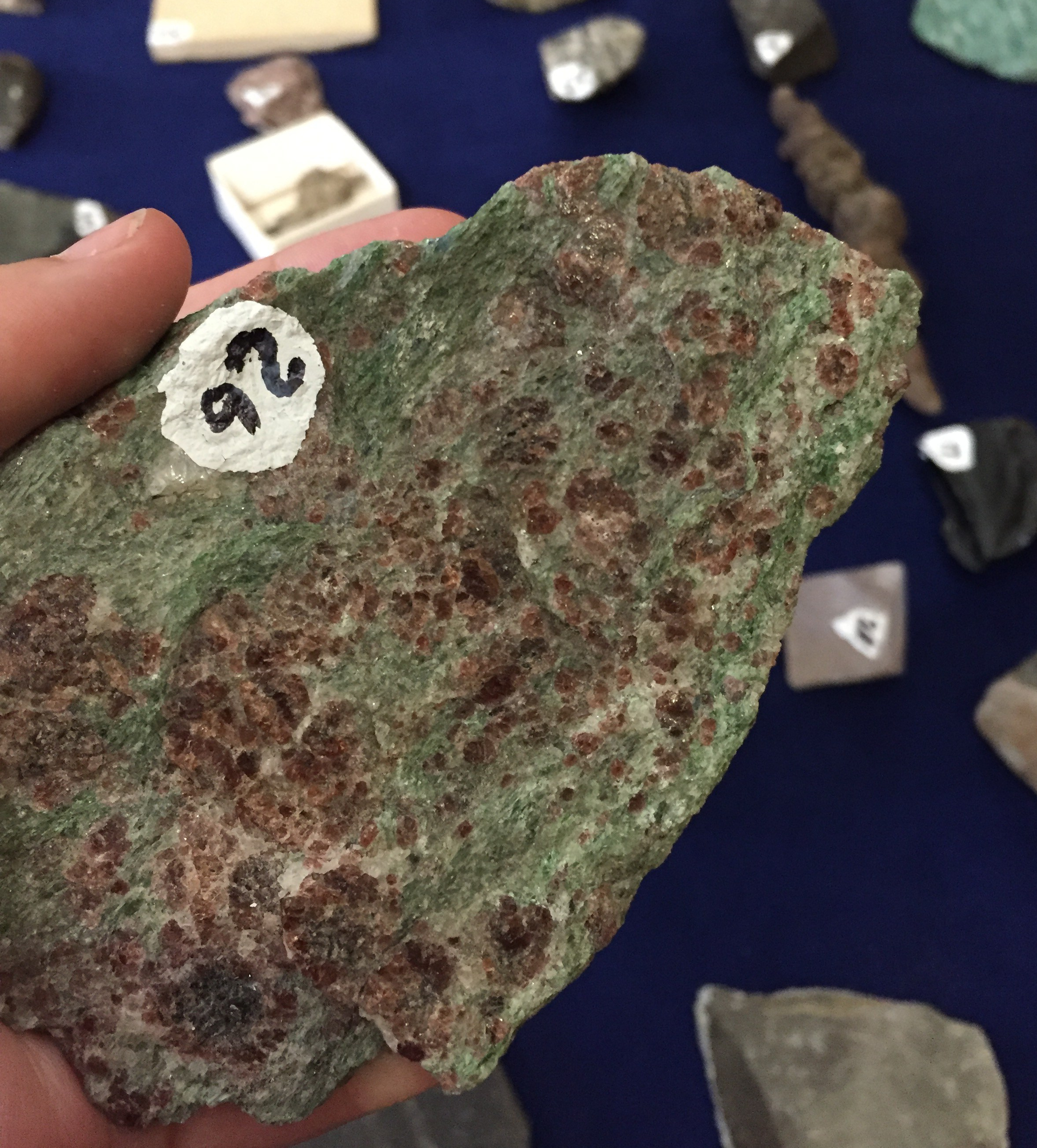 IMG_1241[1] Published August 6, 2018 at 2355 × 2607 in The 2018 Geoscience Education Academy Next → GEA teachers were tasked with identifying this table of rocks.Any guesses on what this red and green one is?