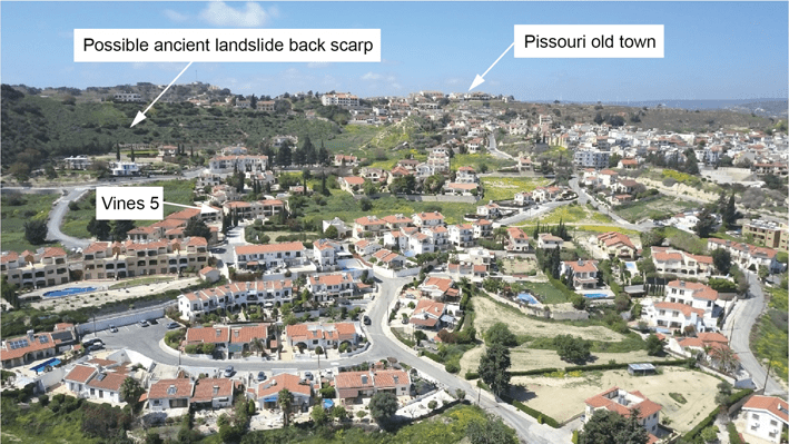 Fig2 Published September 28, 2018 at 709 × 399 in The destructive power of a slow-moving landslide Next → The old town of Pissouri occupying the higher ground in the distance with Limnes in the foreground and middle ground.