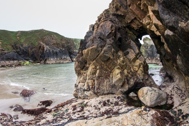 The rocks were originally granite which formed from silica rich magma that cooled within the Earth’s crust. Later, magma rich in iron and magnesium was injected into the granite and cooled to form gabbro. As the continents shifted these rocks were deeply buried and baked, resulting in the ‘Lewisian gneisses’ that are seen along the North Roe coast.
