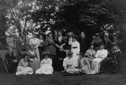 Staff of Newnham College (1907). Gertrude Elles sitting on grass second from left. From ‘The role of women in geological higher education – Bedford College, London (Catherine Raisin) and Newnham College, Cambridge, UK’,