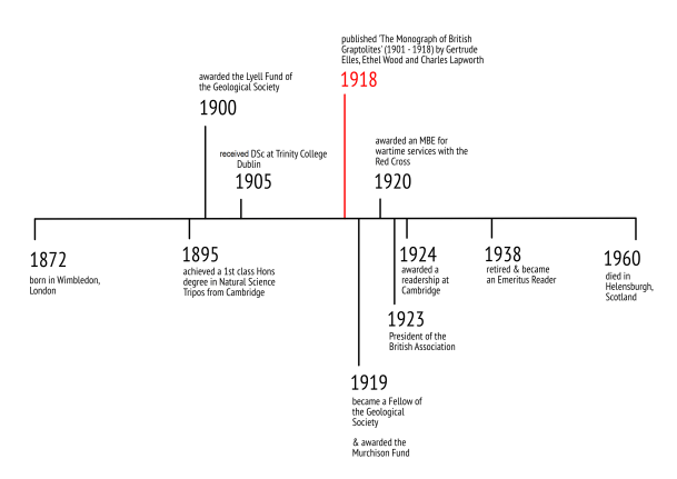 Elles was a field geologist, stratigrapher and palaeontologist. Her major work concerned the interpretation of graptolite zones of Lower Palaeozoic strata. In the late 1890s, she worked with her Newnham colleague Ethel Wood on the preparation of British Graptolites (1901 – 1918), a monograph which was produced in parts over the next twenty years under the general editorship of Professor Charles Lapworth.