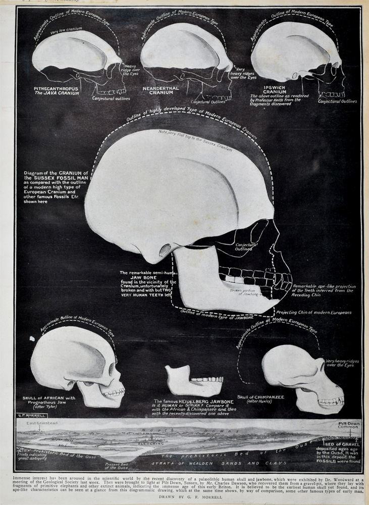 Supremacist theories such as these were embedded into the science and culture of the period and in the case of Piltdown are likely to have directly influenced the supposition of not only what the missing link would look like but where it should be found (ie in Western Europe) and all but laid the ground for Dawson to commit his fraud.