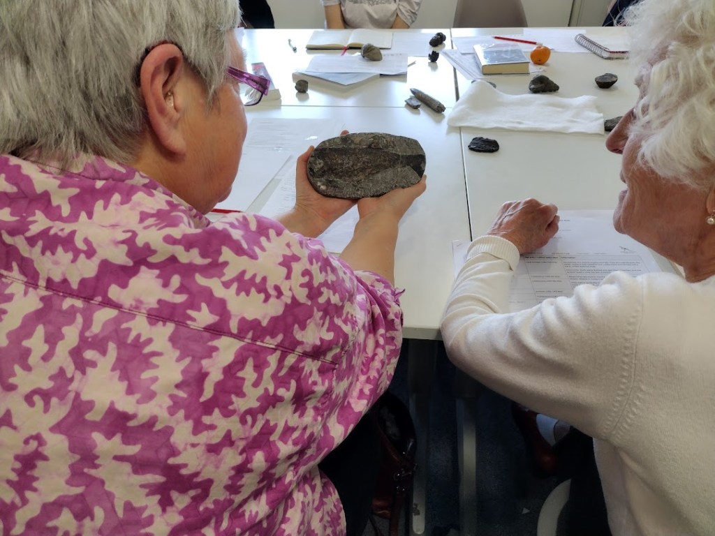 This led to our ‘Wise Words for the Earth’ day in October 2022. We borrowed two boxes of rocks and fossils from the Sedgwick Museum in Cambridge. Around a dozen people who knew virtually nothing about geology and the structure of the earth gathered round a table in Canterbury Public Library and wrote about rocks and fossils.